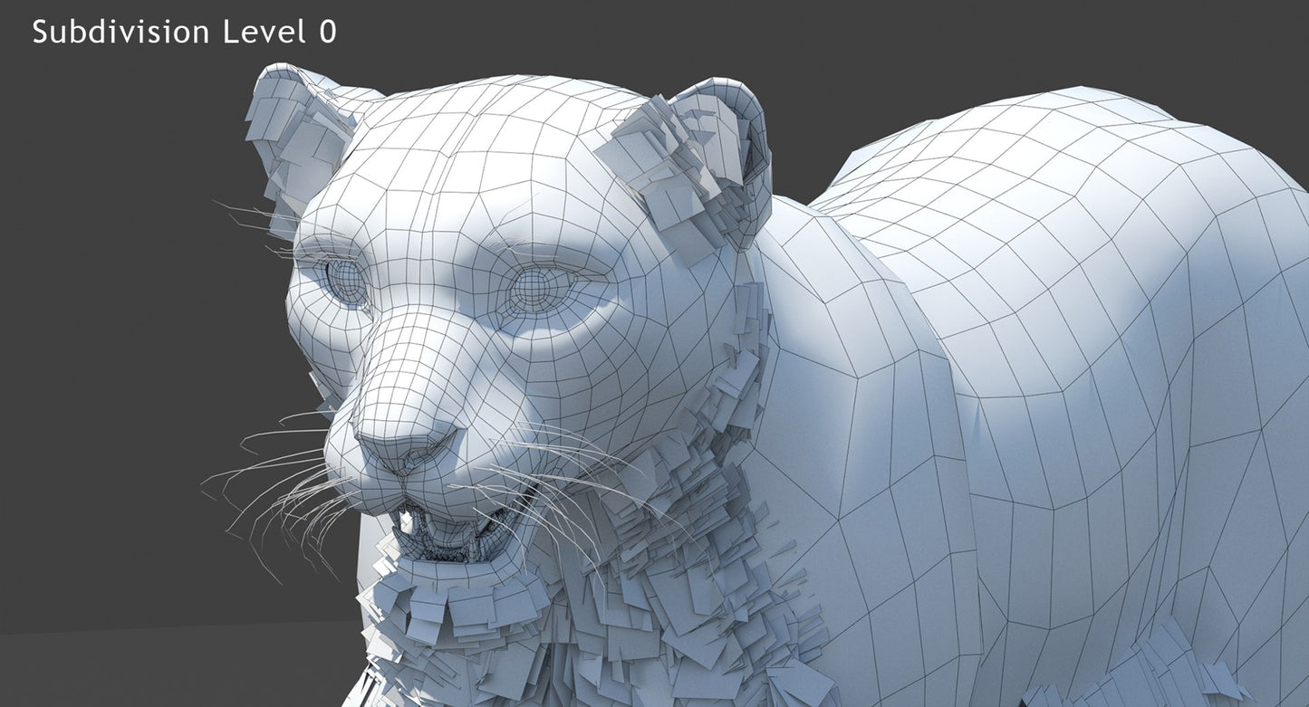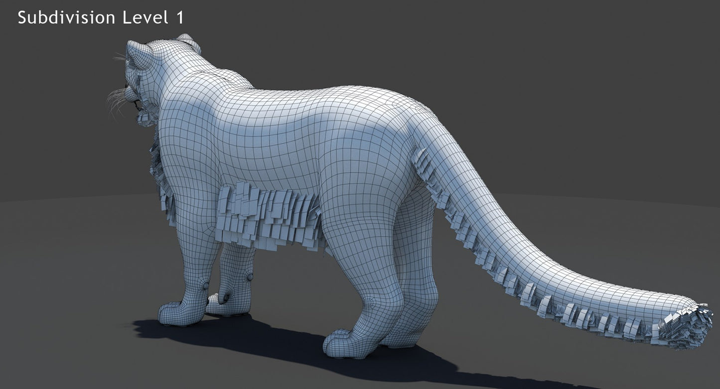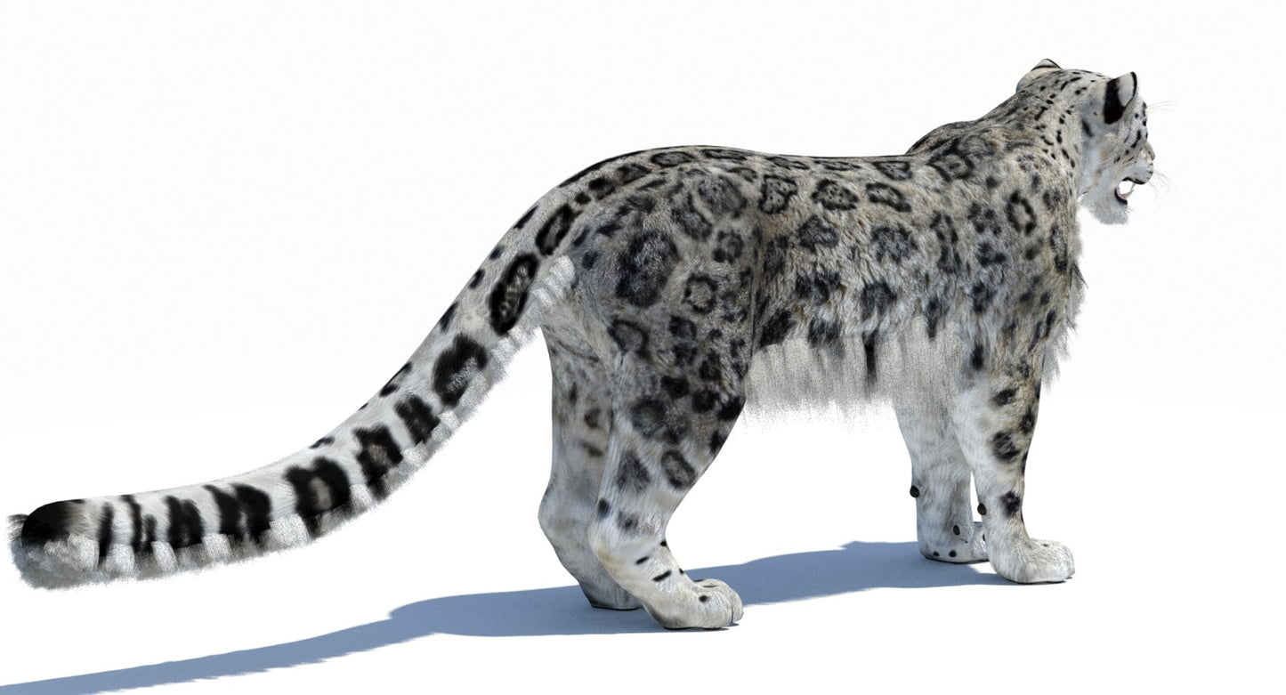 Snow Leopard 3D Model Polygonal Hairs