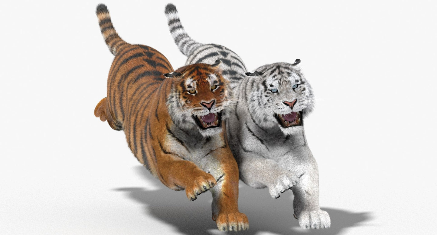 Realistic Animated Tiger 3D Model with Fur in Two Colors